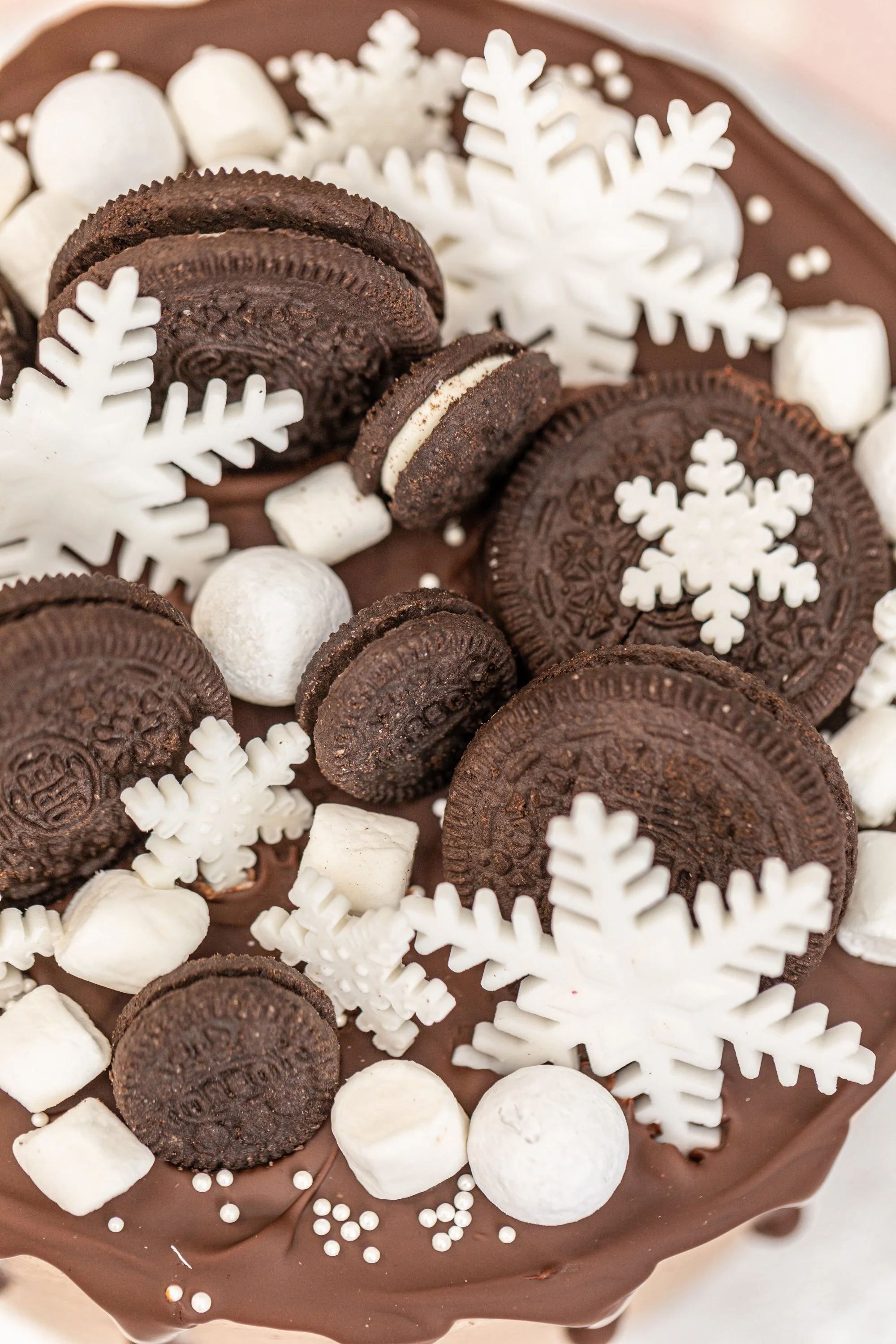 Oreo Snowflake Treat cake with a choice of sponge flavours including chocolate Oreo, chocolate or red velvet.